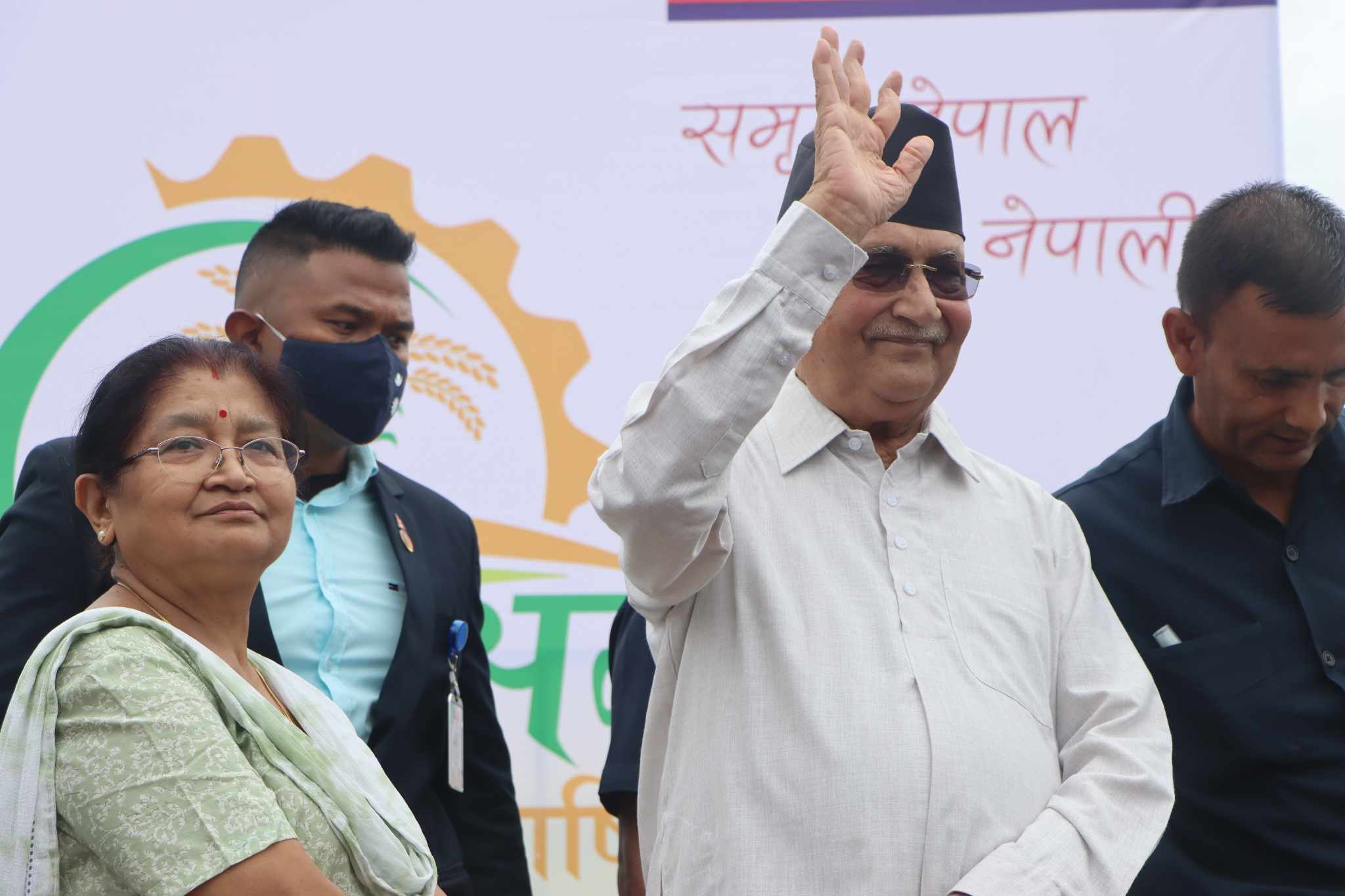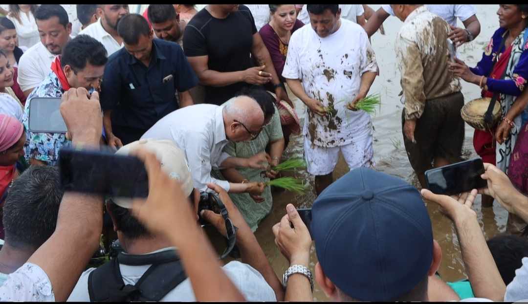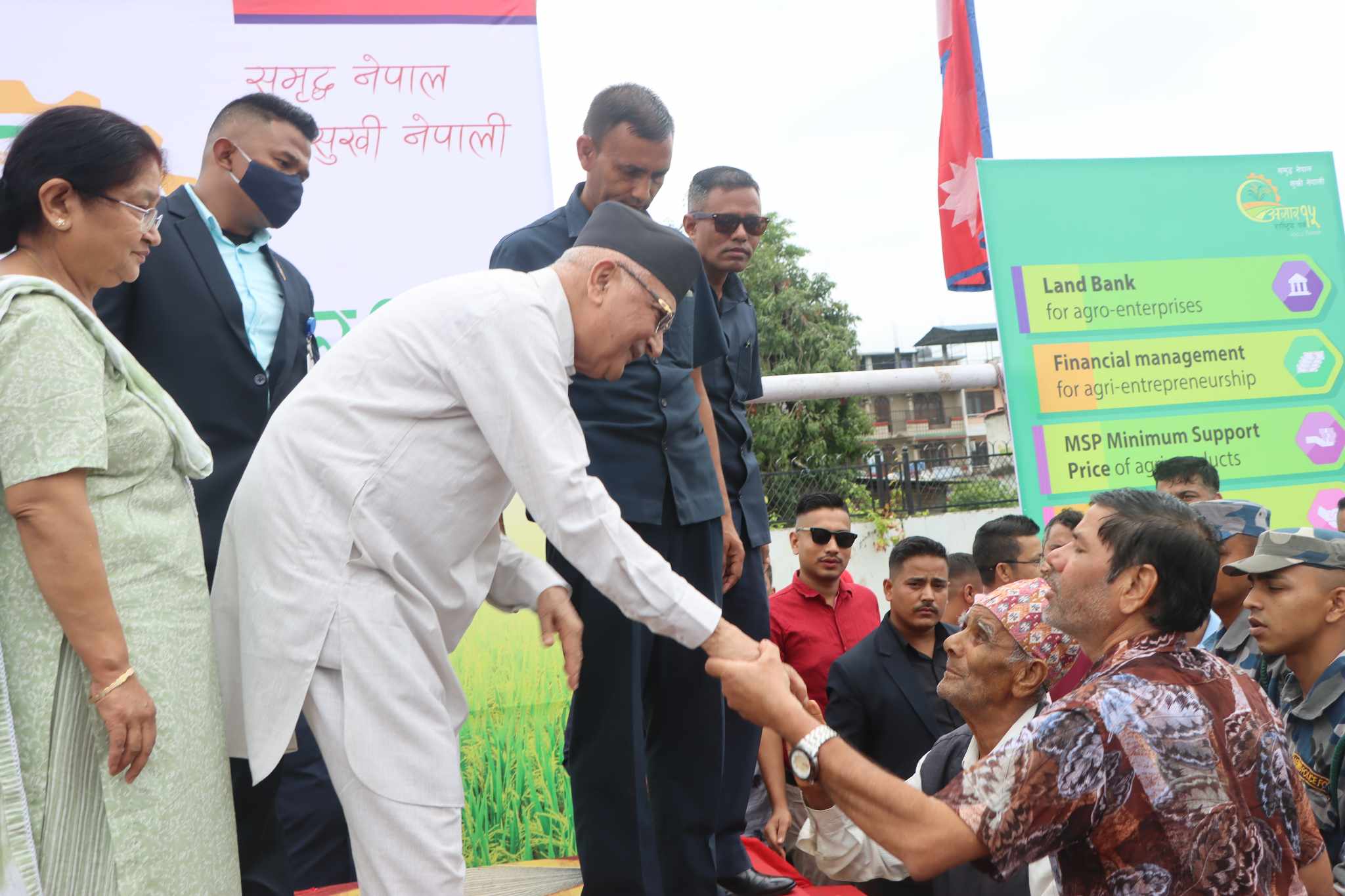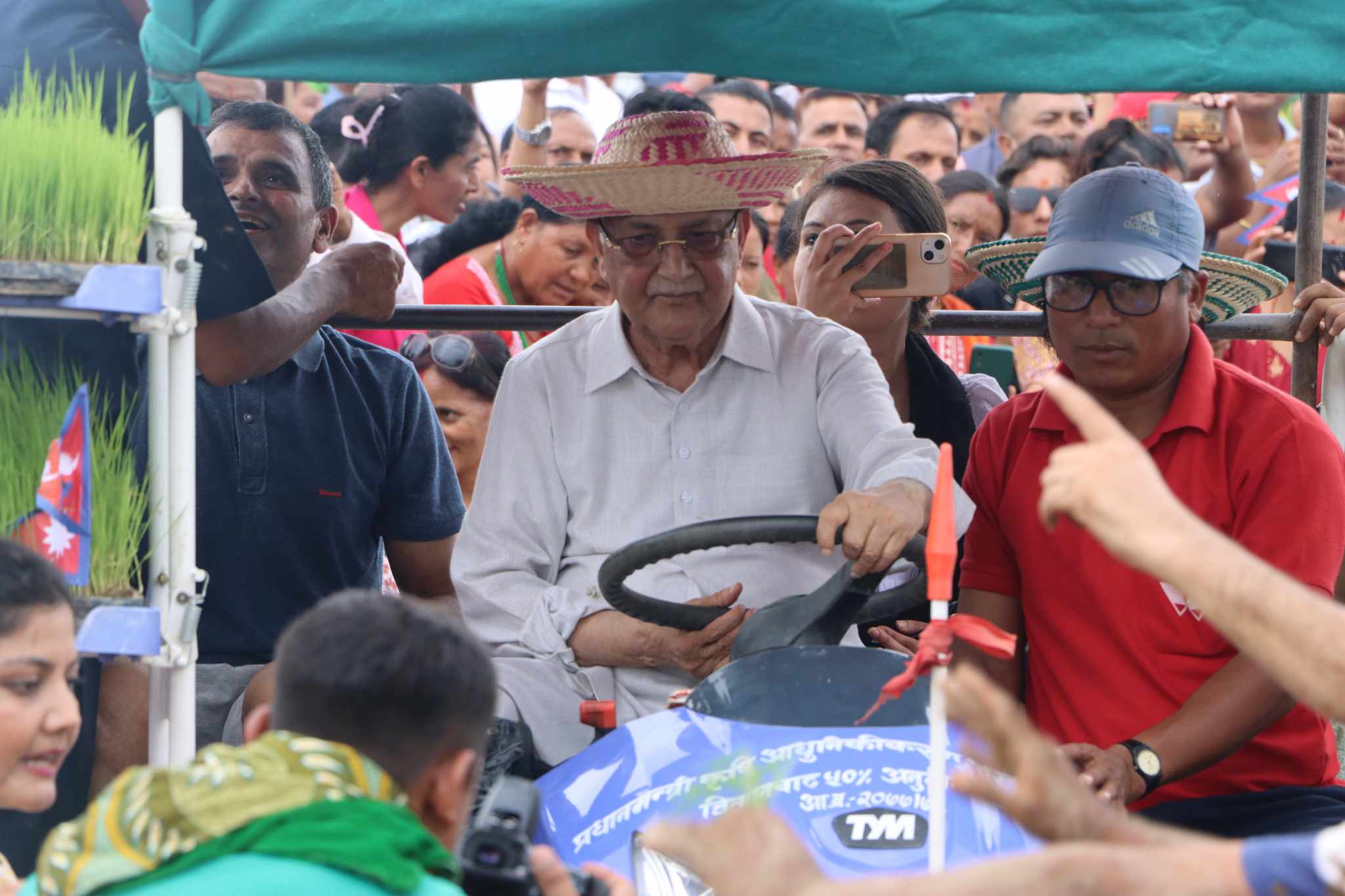 पूर्व प्रधानमन्त्री केपी शर्मा ओलीकाे धान दिवस हेराैं तस्बिरमा