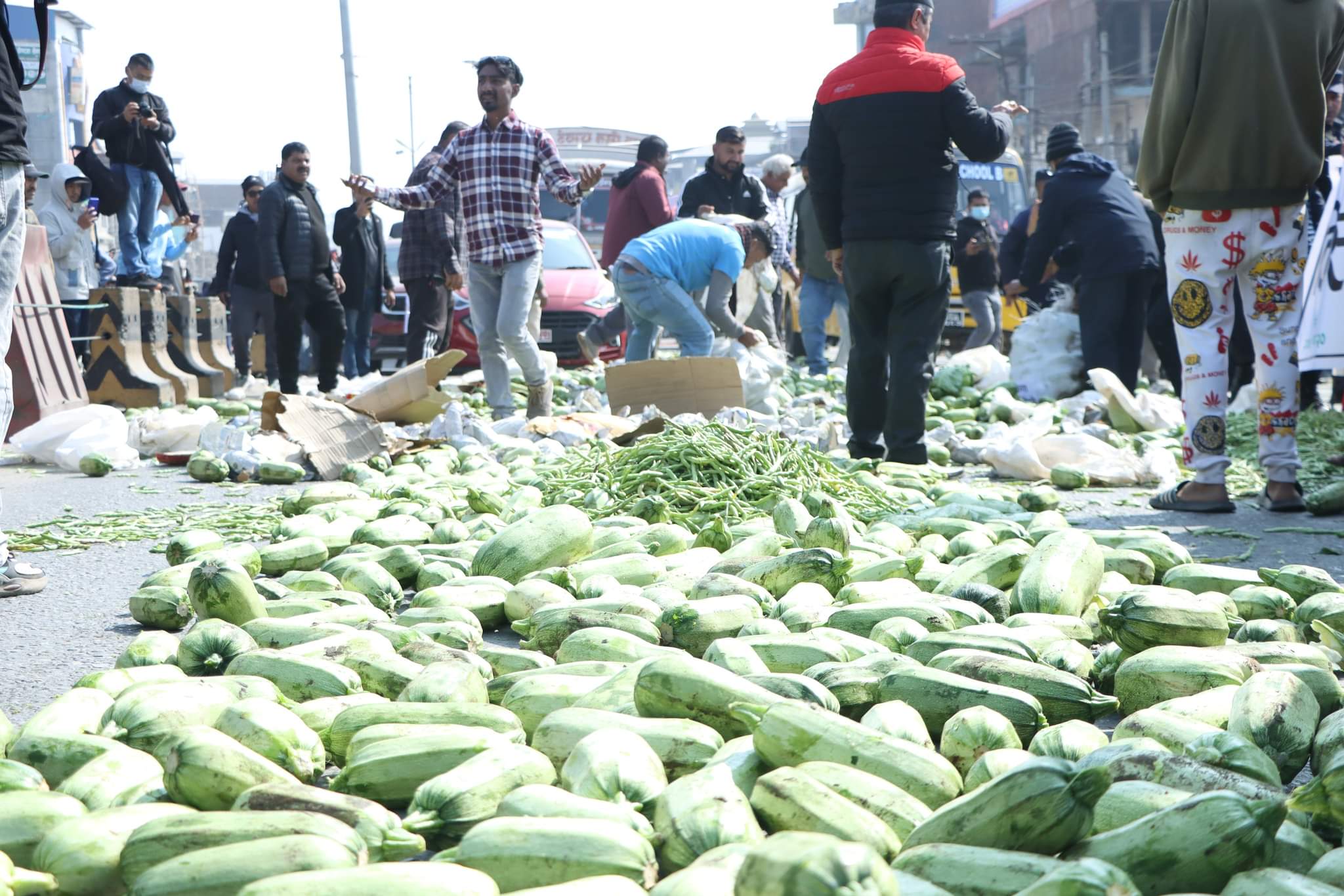 फर्सी, गोलभेँडा, काउली, बन्दालगायतका तरकारी पुलचोकमा ल्याएर फालेका हुन्। किसानहरूले सरकारको लाचारीपनका कारण किसान सडकमा आउन बाध्य भएको भन्दै तीनै तहको सरकारविरूद्ध नाराबाजीसमेत गरेका थिए।