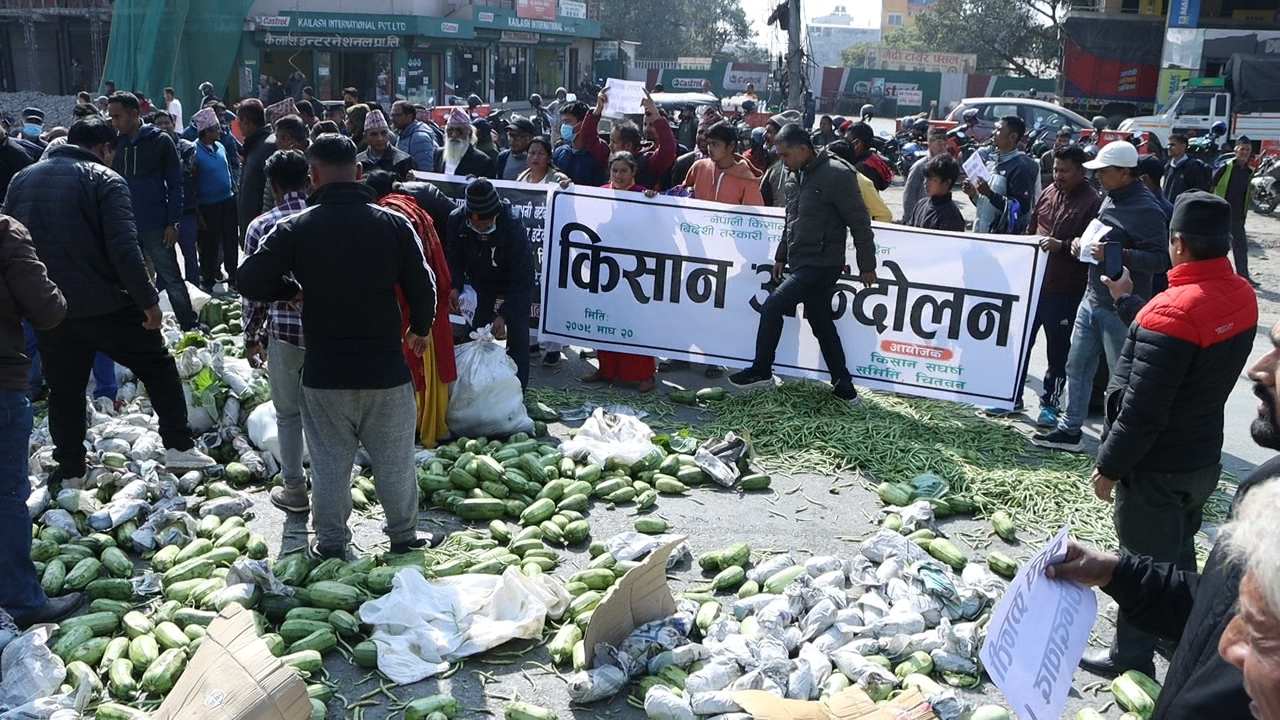 भारतीय तरकारीका कारण चितवनको तरकारीले बजार नपाएपछि यँहाका किसानहरु आन्दोलित बनेका छन्। शुक्रबार चितवनका किसानले सरकारको ध्यानाकर्षण गराउन नाराणगढको पुलचोकमा ट्याक्टरका ट्याक्टर तरकारी ल्याएर सडकभरी पोखेर आन्दोलन गरेका हुन्।