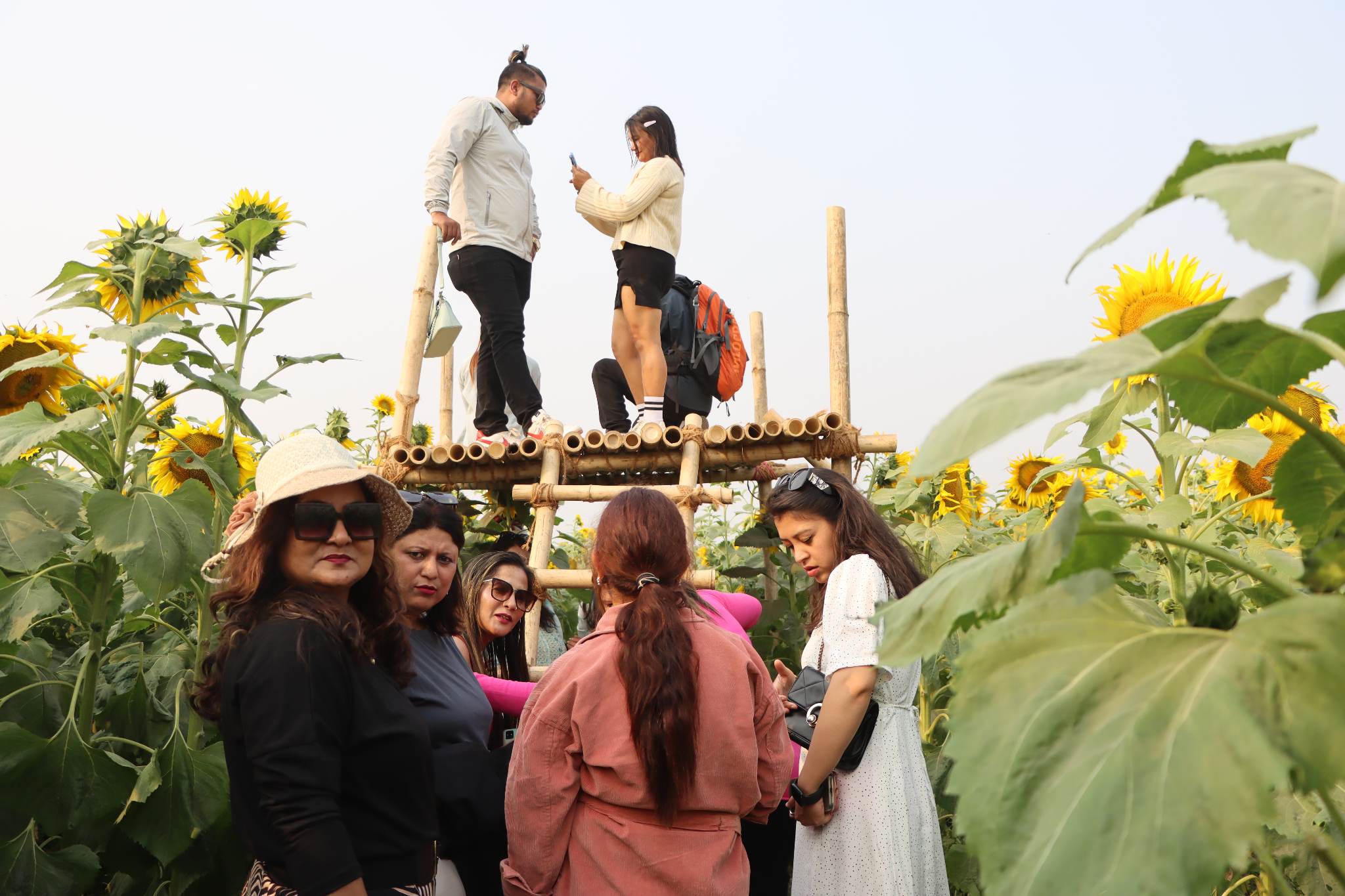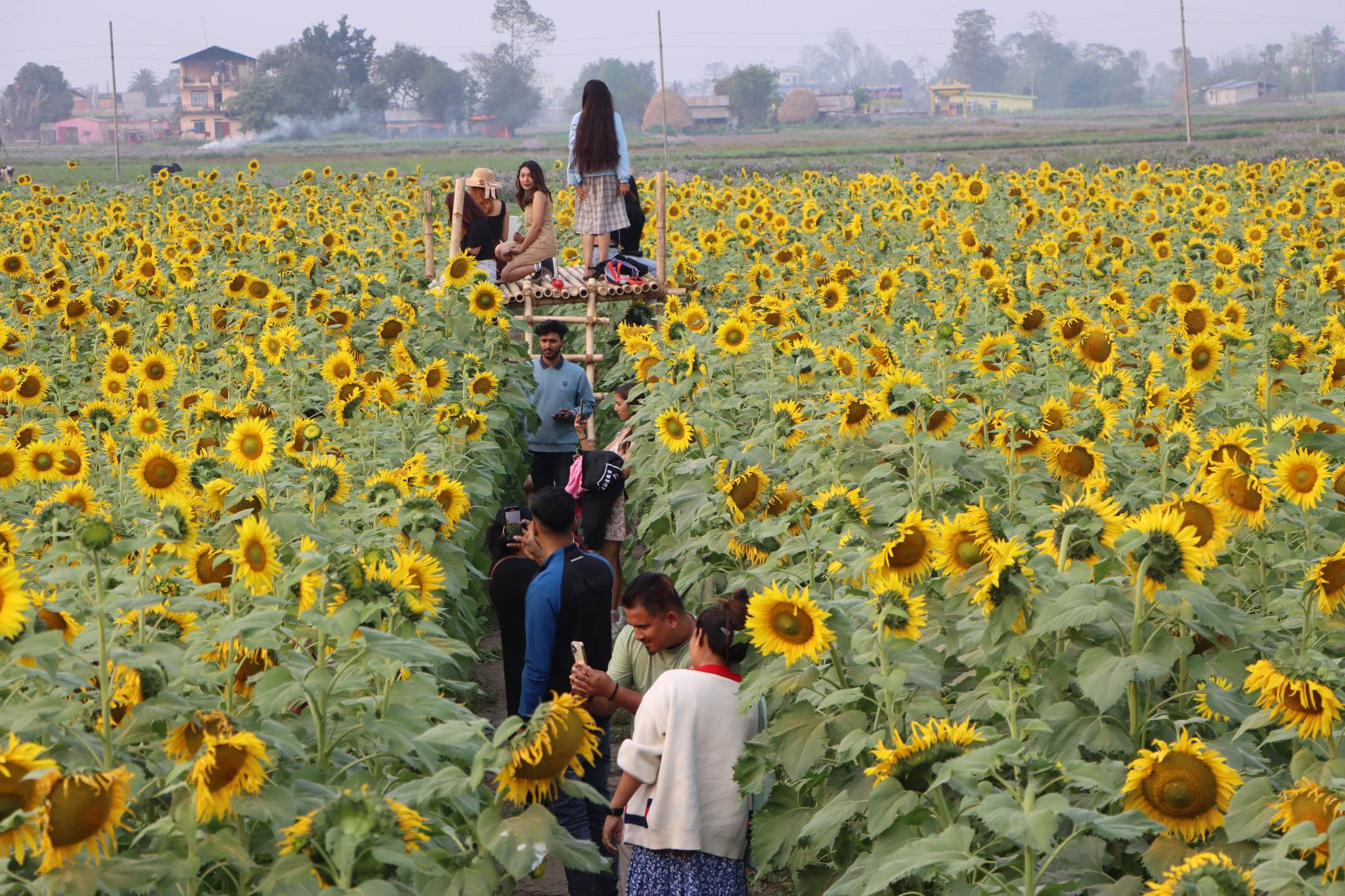 ढकमक सुर्यमुखि, टिकटक बनाउने र फाेटाे खिच्नेकाे भिड (फोटो फिचर)